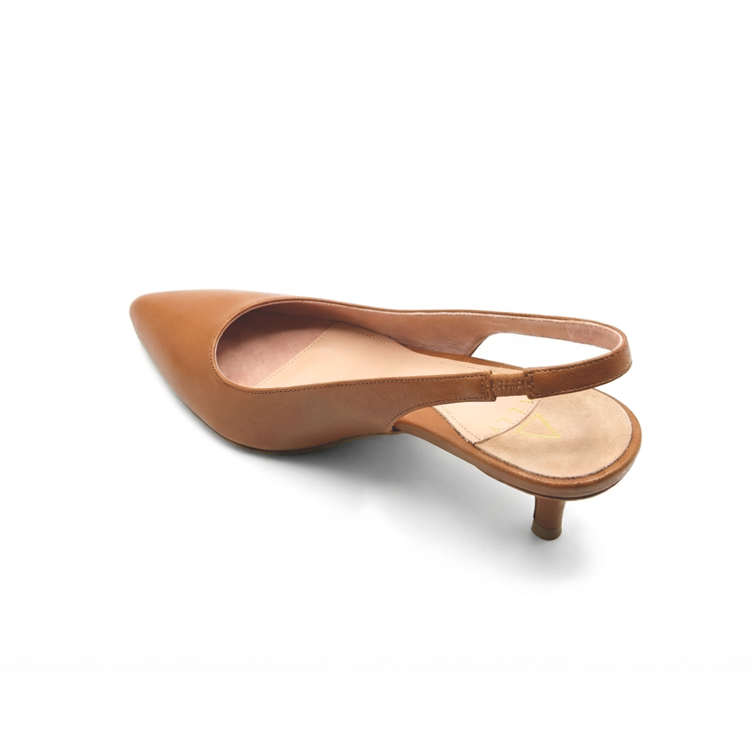 A professional woman's best ally in fashion, this chic, pointed-toe 2-inch kitten heel is celebrated for comfort and superior fit. The handcrafted stretchy leather upper is padded with an ergonomically-designed insole, proper arch support, and available in half sizes and 4 different widths.