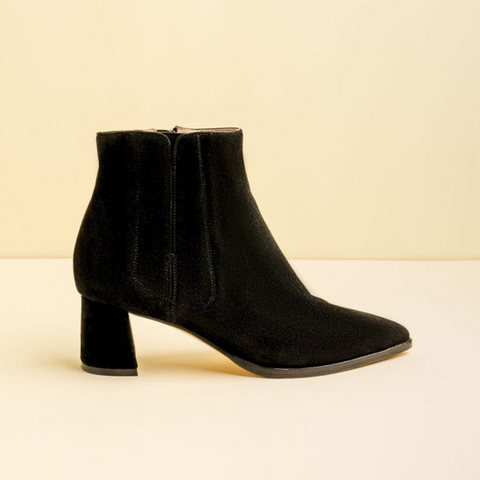 Designed to be worn with thin socks (go up a half-size to wear with thicker socks). If you wear a narrow fit (A) in our heels, we recommend wearing medium (B) in our boots.