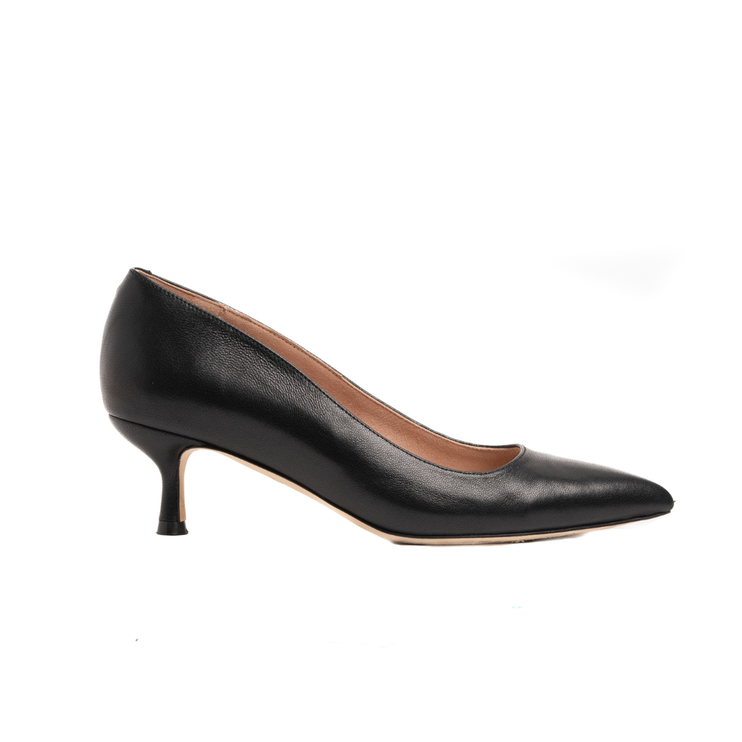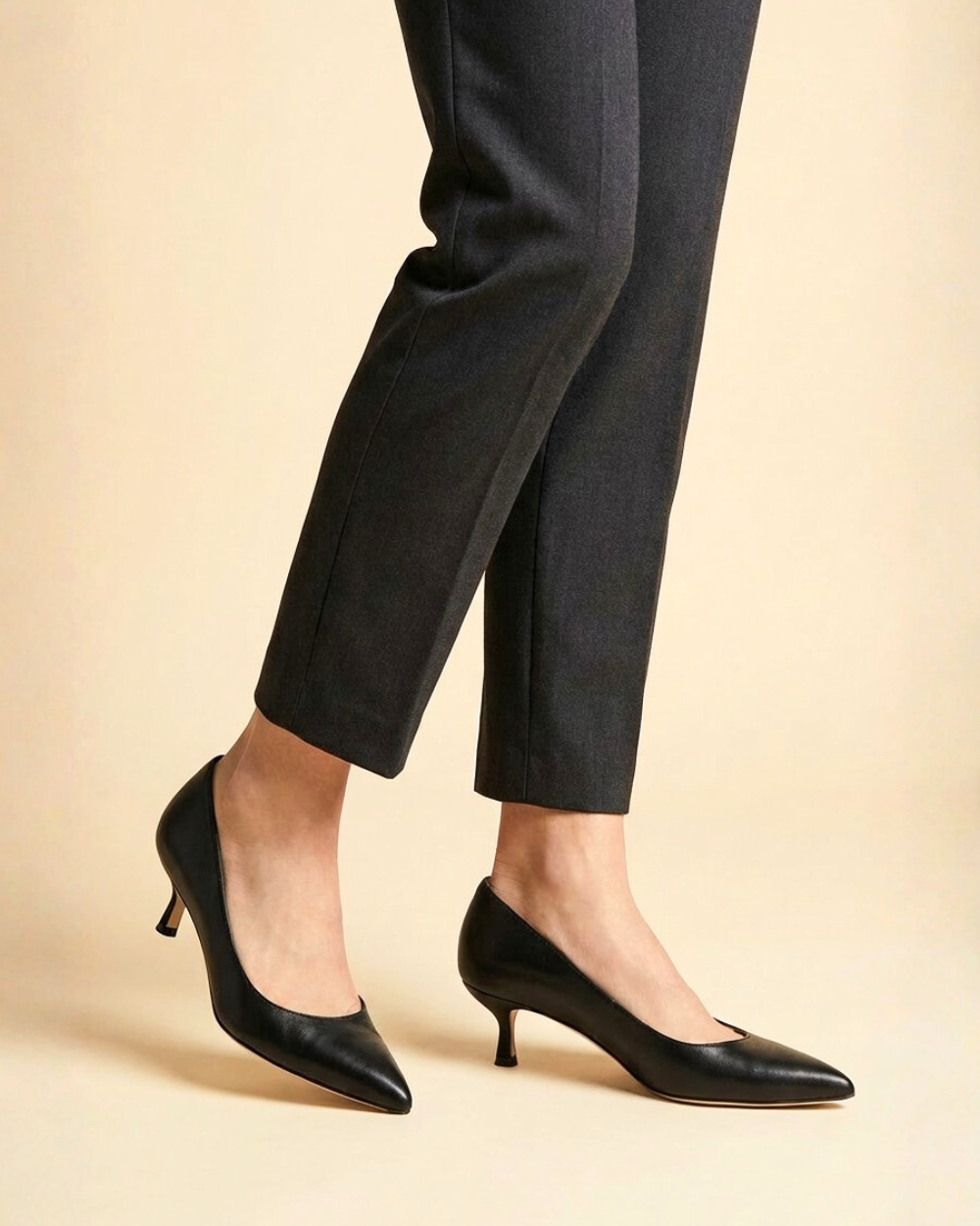 A professional woman's best ally in fashion, this chic, pointed-toe 2-inch kitten heel is celebrated for comfort and superior fit. The handcrafted stretchy leather upper is padded with an ergonomically-designed insole, proper arch support, and available in half sizes and 4 different widths.