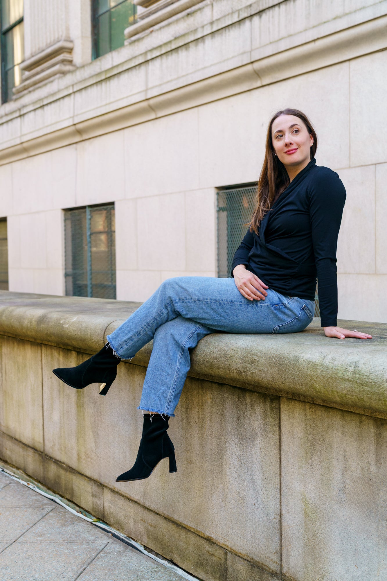 We designed the Stretch Suede Sock Boot for women who move with purpose, and demand elegance that moves with them. Inspired by the sharp lines of classic tailoring and the fluid comfort of stretch materials, this boot molds gently to the ankle. The soft suede shaft, walkable block heel, and all-day supportive insole to create a sleek, versatile essential. Crafted for crisp fall mornings, evening plans, and every step in between.