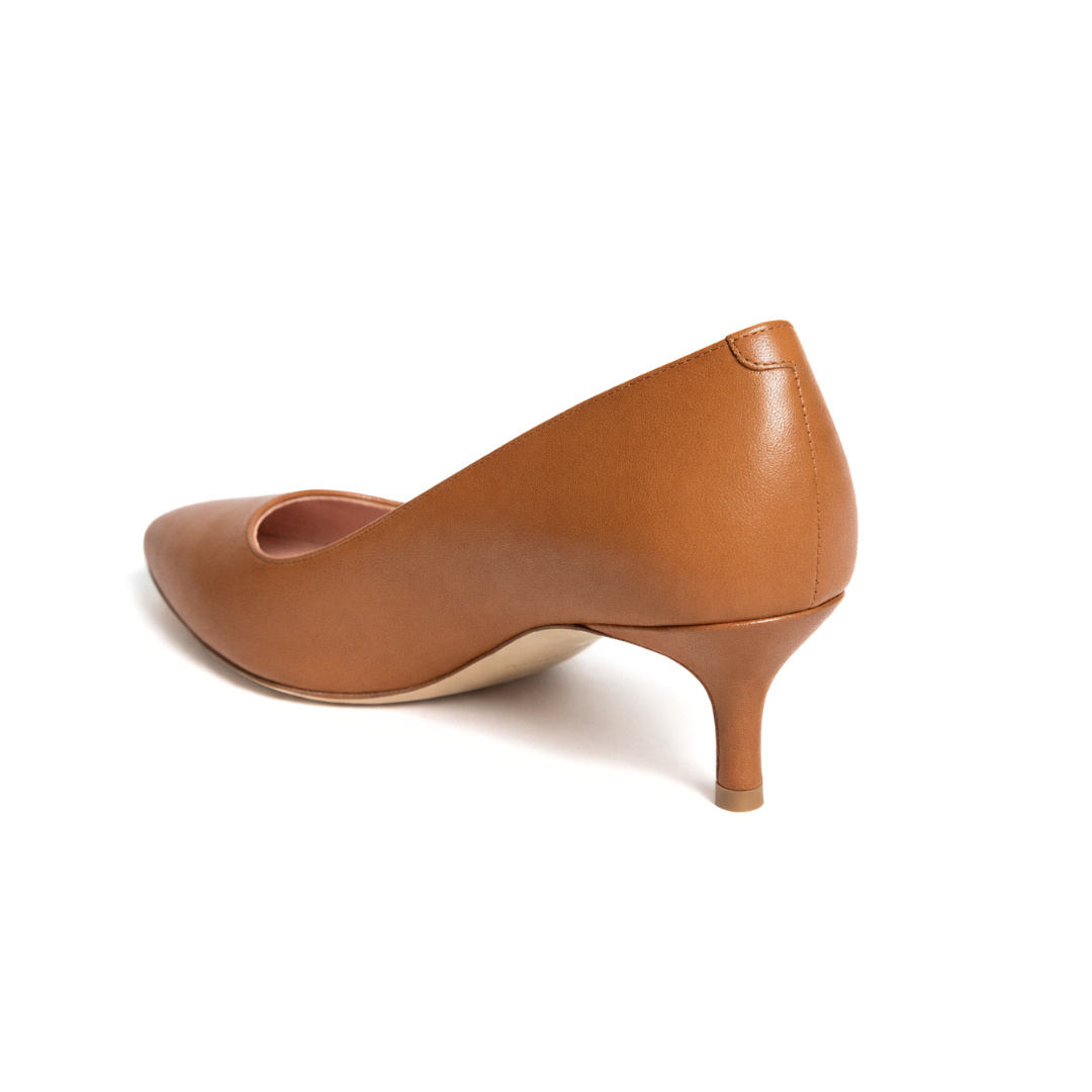 A professional woman's best ally in fashion, this chic, pointed-toe 2-inch kitten heel is celebrated for comfort and superior fit. The handcrafted stretchy leather upper is padded with an ergonomically-designed insole, proper arch support, and available in half sizes and 4 different widths.