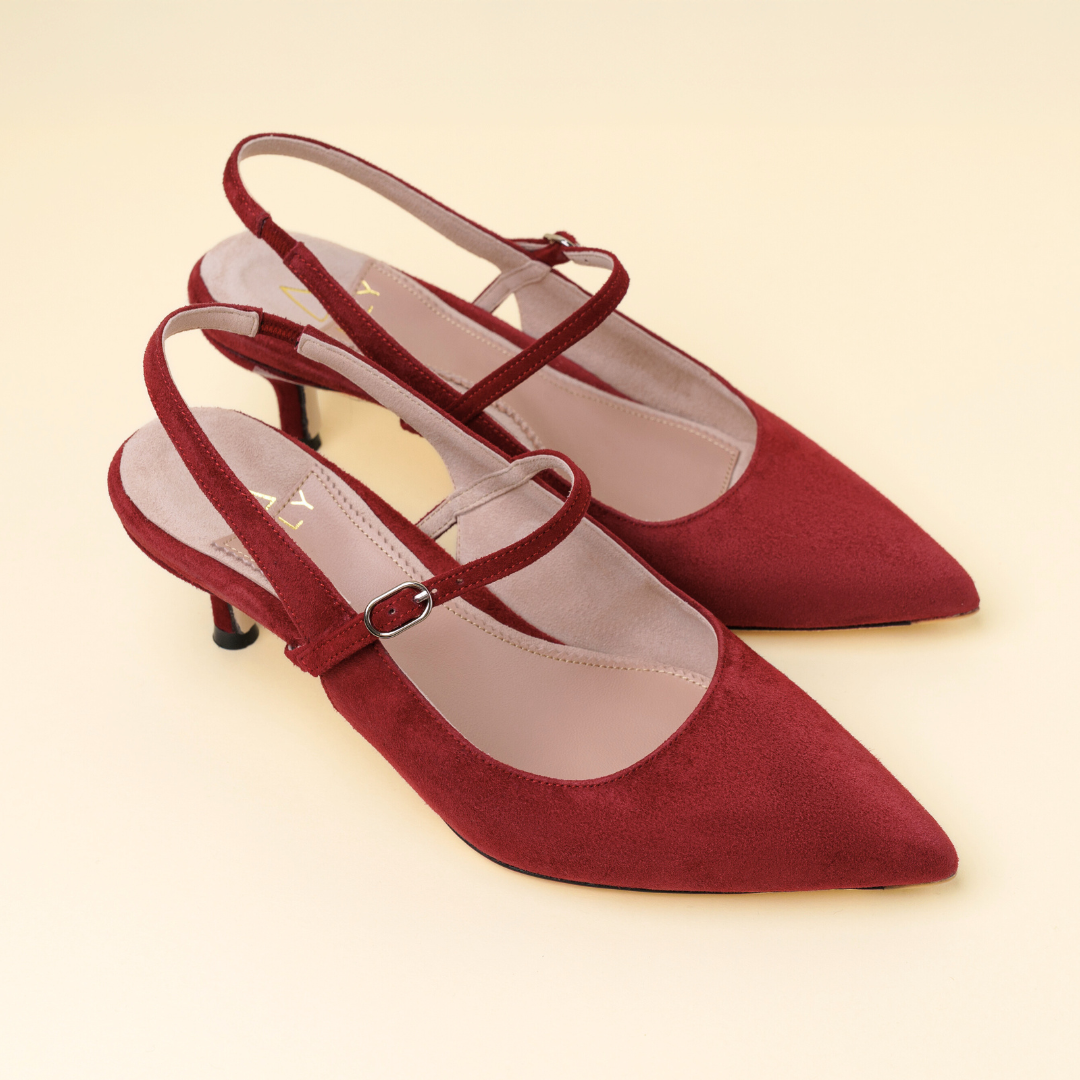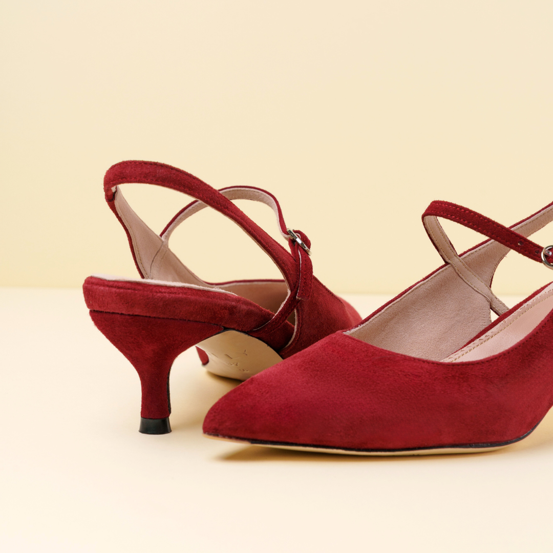 Garnet Suede Mary Jane Slingback Kitten Heel | ALLY Shoes