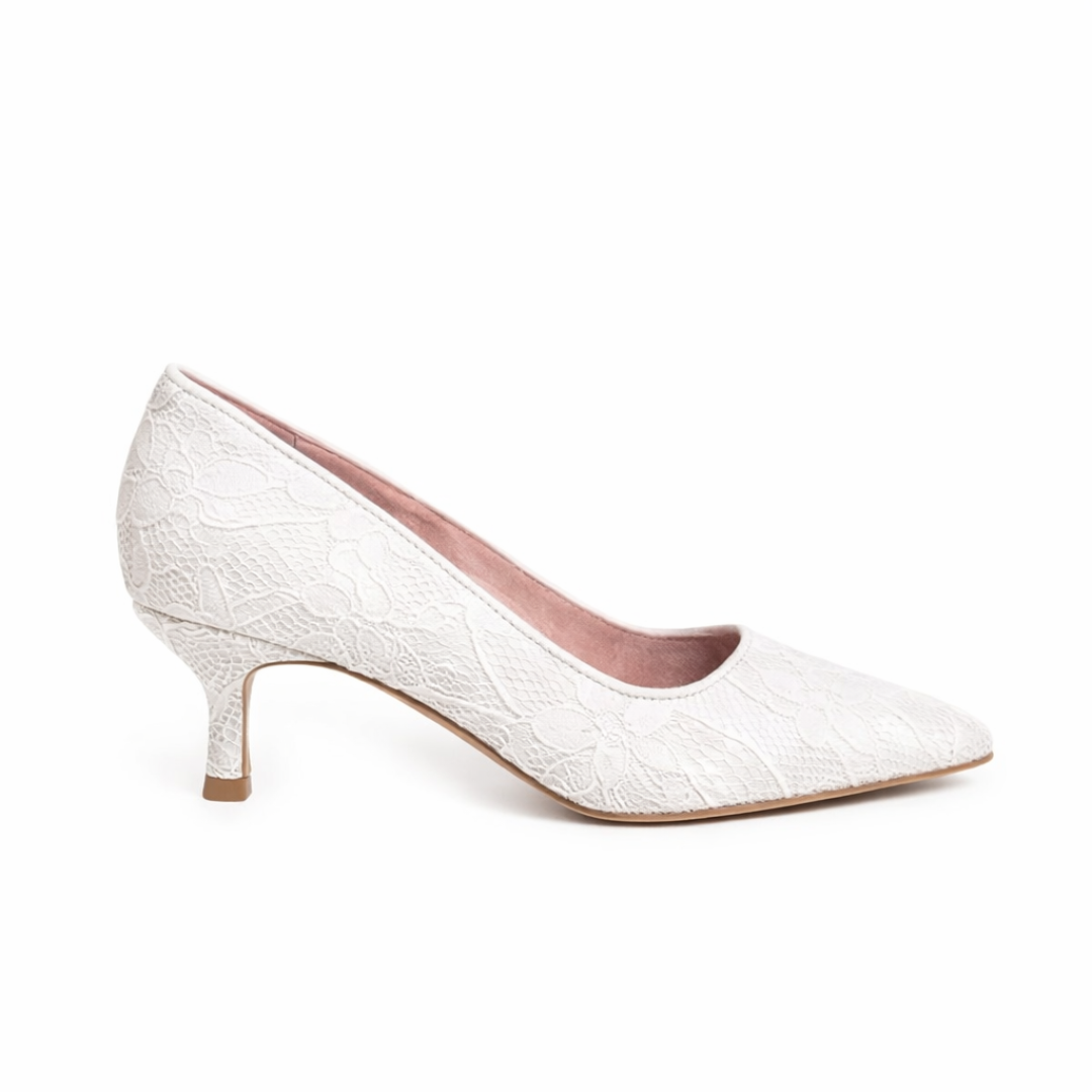 - Lace-covered lambskin leather upper, Italian leather sole, suede lining
