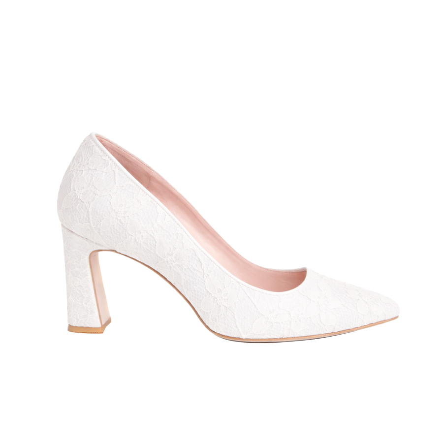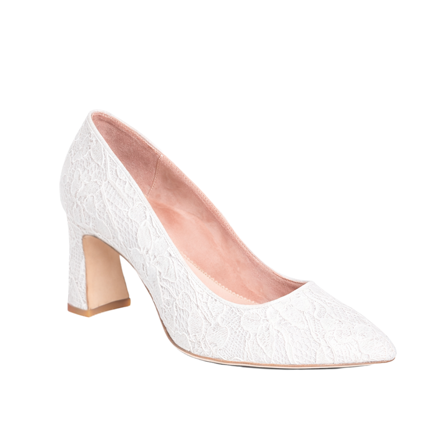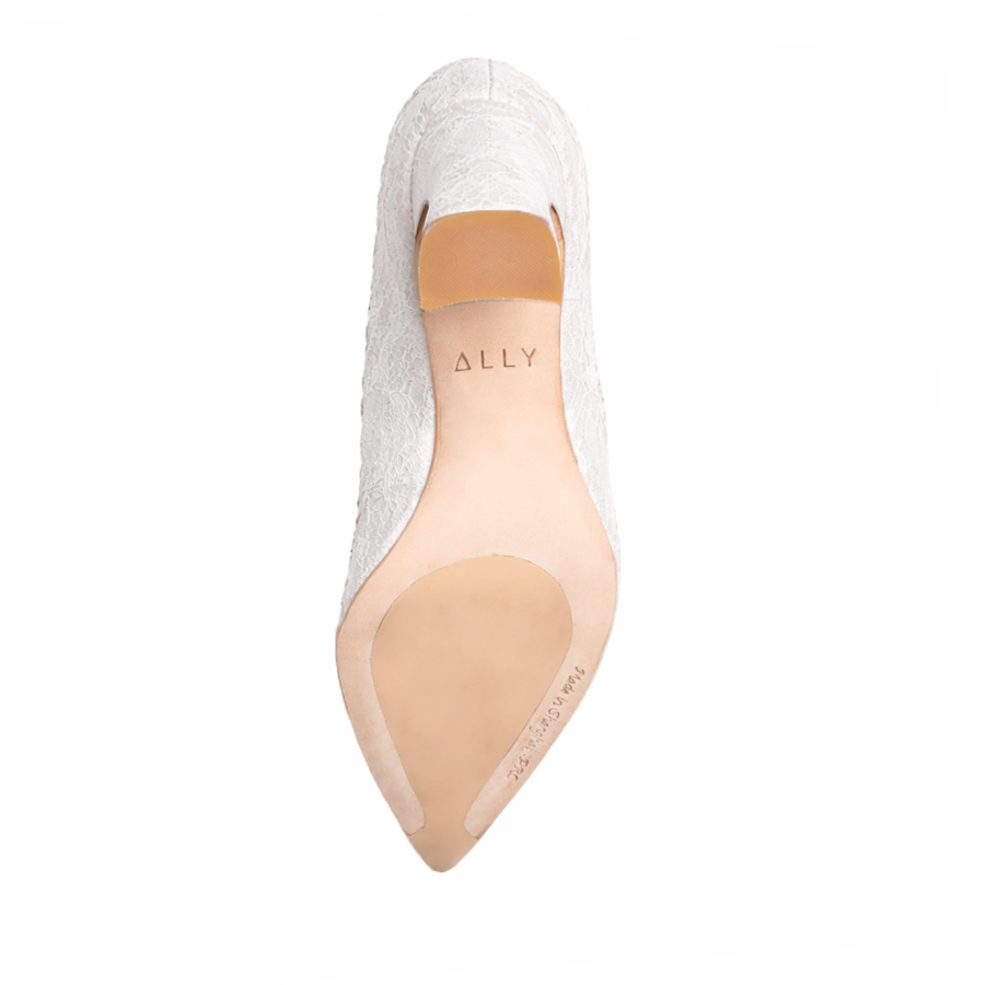 - Lace-covered lambskin leather upper, Italian leather sole, suede lining