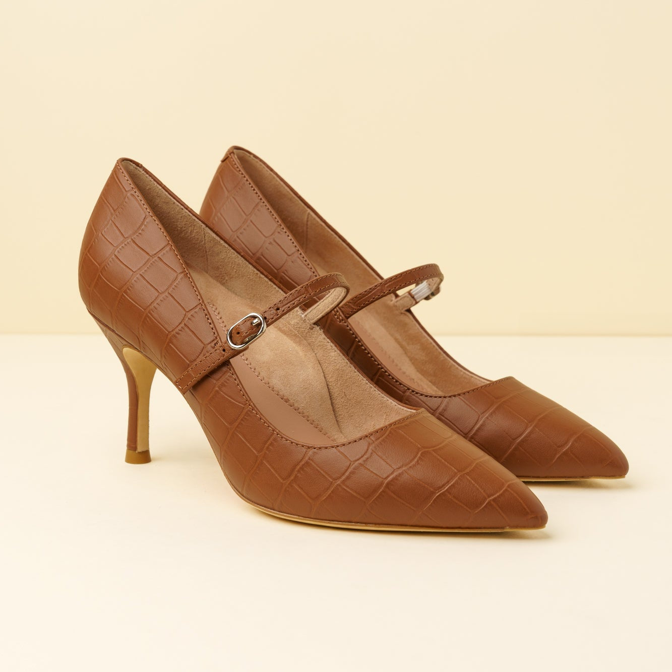 This chic, pointed-toe pump is celebrated for comfort and superior fit. The classic design is polished and pairs well with any outfit. The classic Mary Jane strap secures the foot while adding a timeless look.