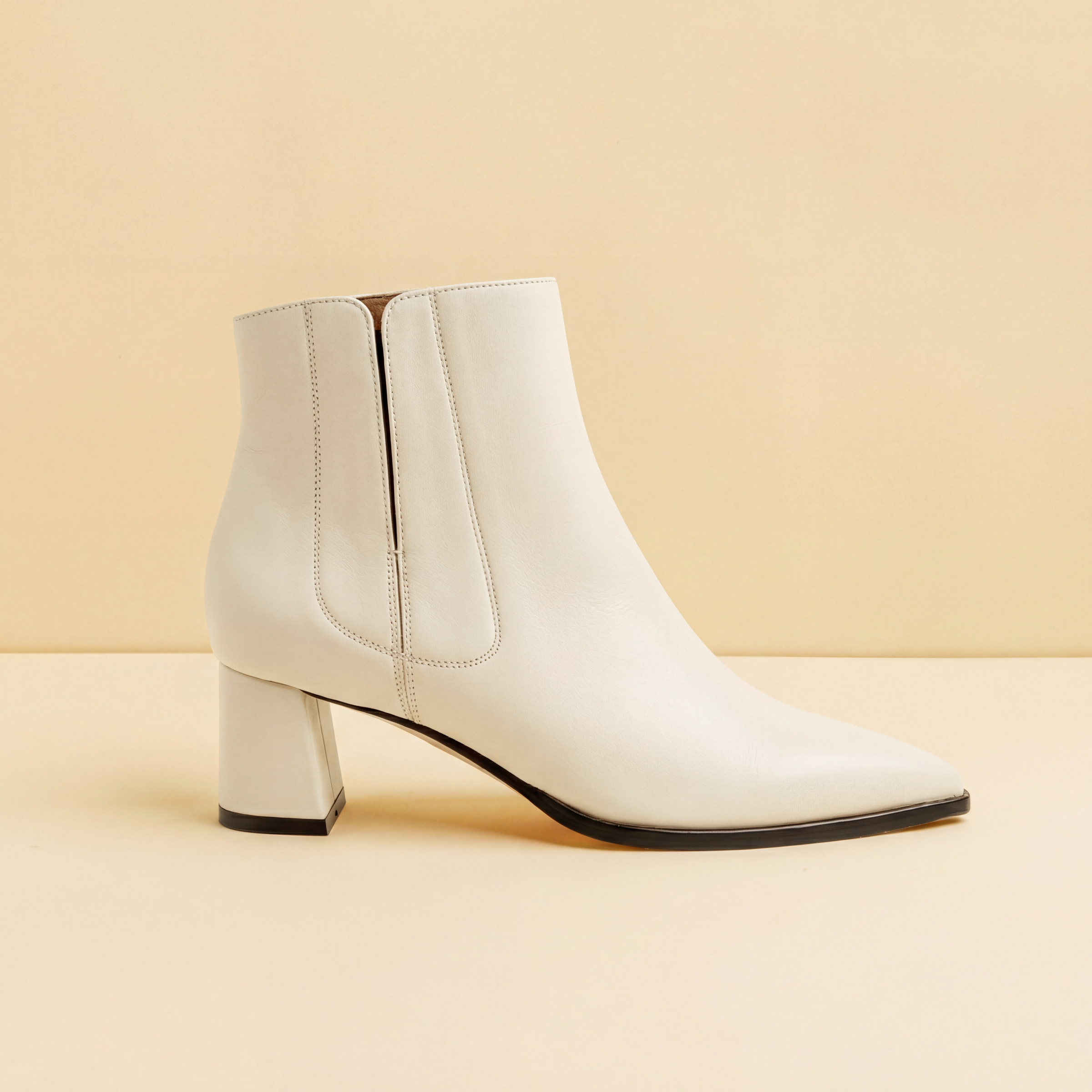 Designed to be worn with thin socks (go up a half-size to wear with thicker socks). If you wear a narrow fit (A) in our heels, we recommend wearing medium (B) in our boots.