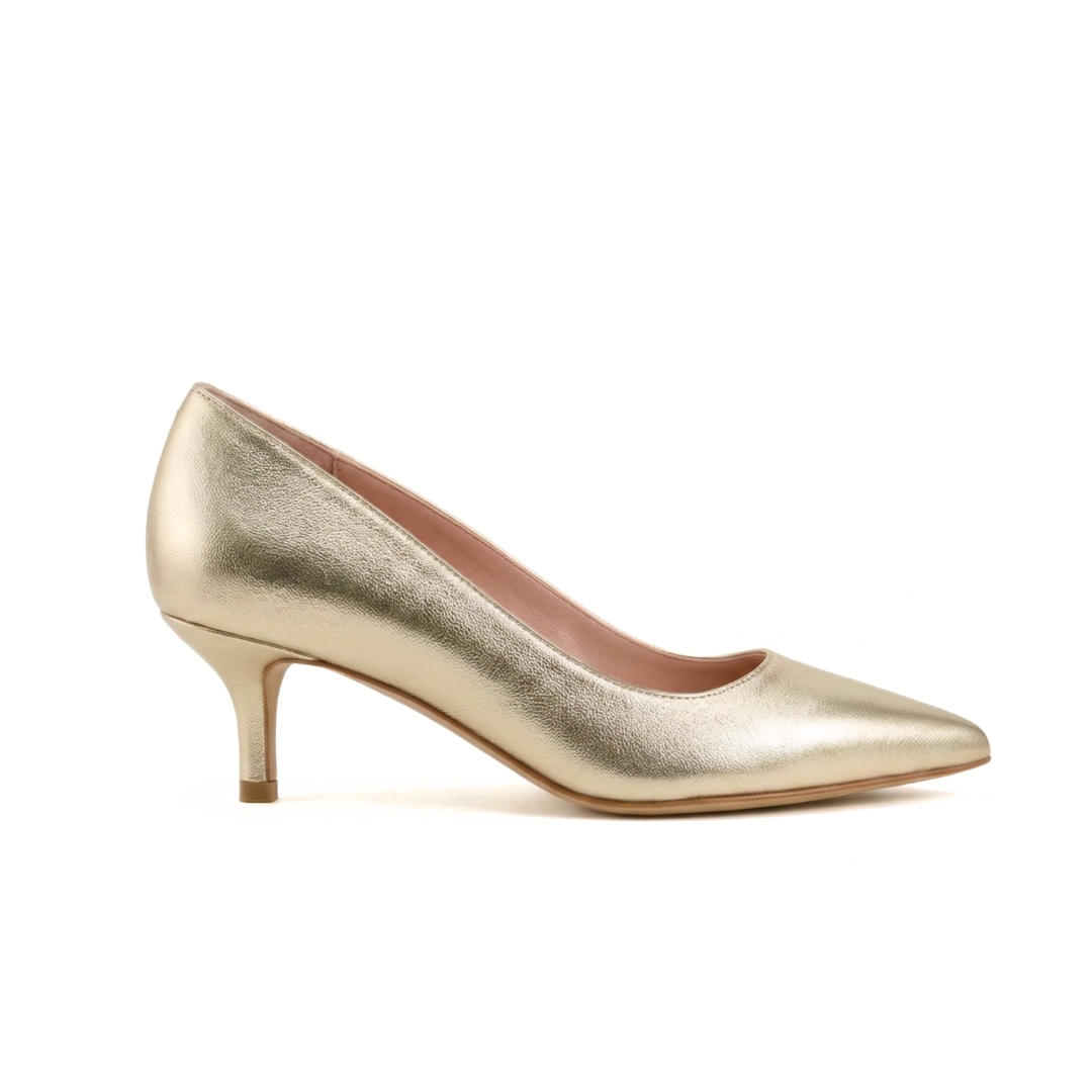 Champagne Gold Metallic Leather Kitten Heel - $335.00