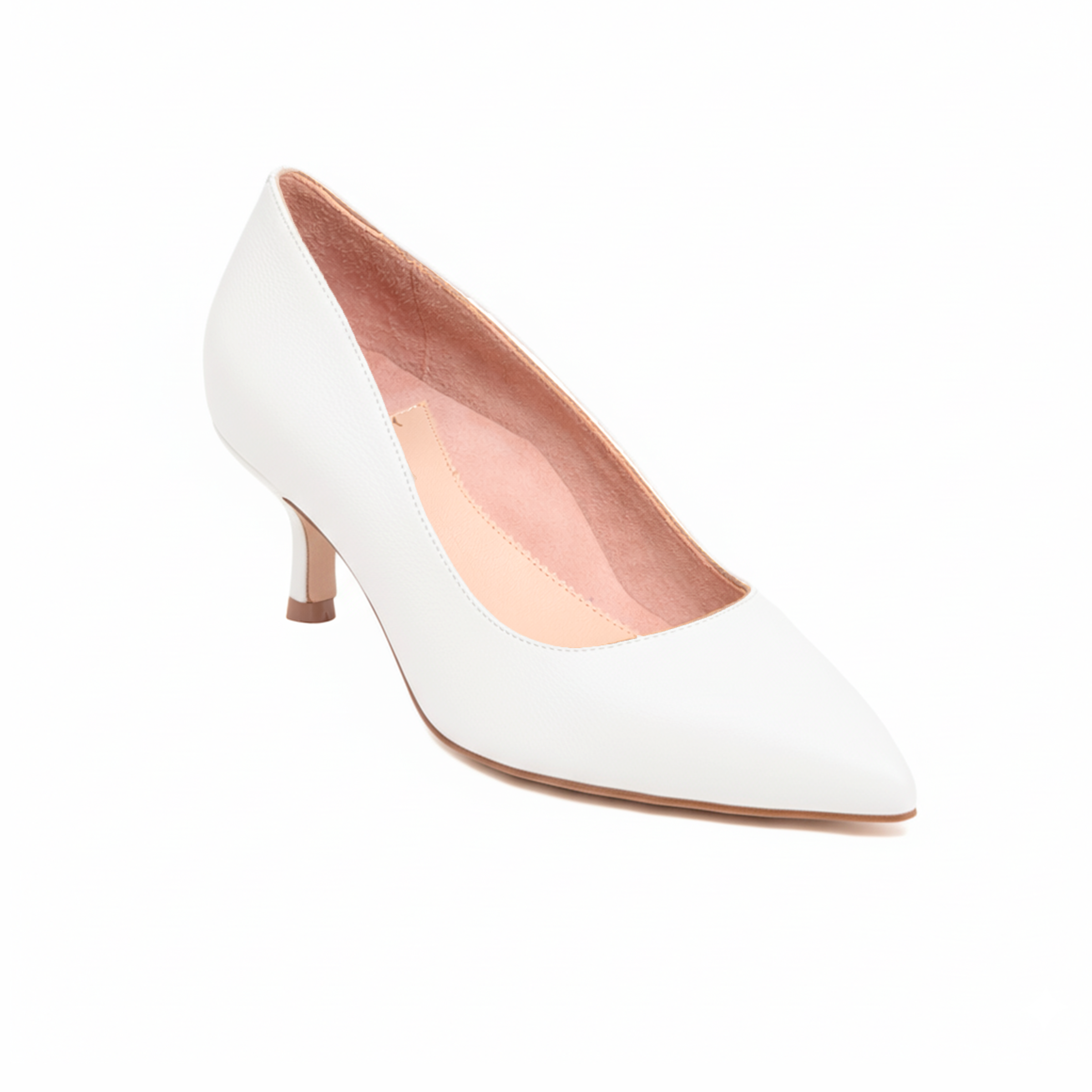A professional woman's best ally in fashion, this chic, pointed-toe 2-inch kitten heel is celebrated for comfort and superior fit. The handcrafted stretchy leather upper is padded with an ergonomically-designed insole, proper arch support, and available in half sizes and 4 different widths.